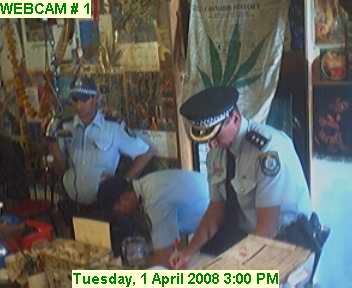 say about this incident... I had just finished up loading the following word assembly, updated my BBlog, very excited about what I had uploaded Here we are, making the final arrangements for another BiG JoinT H*E*M*P delegation to Canberra (via Sydney) on a MardiGrass promotion tour, the main point of which is to thank Mr Rudd for signing the Kyoto Protocols, to alert him and every other citizen that we meet along the way to the fact that, cannabis – the plant, MUST be relegalized on a grand scale if we are to have any hope of meeting the targets set to save the planet by the scientists, and as we are making our departure plans, finalizing all the "stops" which the Bus with the BiG Joint on the roof will make, alerting our vast network of global supporters to the upcoming campaign, preparing the press releases and raising the donations, printing posters and all the other myriad details required to mount a national campaign, when news filters through that a "local" police chief is still programmed to ERADICATE Cannabis from the Northern Rivers and crack down upon the internationally famous MardiGrass with a campaign that could seriously jeopardize Australia's ability to meet the Kyoto Commitments, thanks again Mr Rudd, anyway, someone is going to be very embarrassed over the coming weeks and I doubt that its gunna be any of us H*E*M*P activists who are trying to build up the seed stocks of THE best carbon dioxide scrubbing plant known to mankind..... Personally, I'm hoping that there is some break though eco-legislation about to blast thru all levels of parliament that will relegalize cannabis and that all the police who are allocated to the Mardi Grass Festival will be part of the celebration.... I mention this so you will understand where my thinking was (and is) when the police came thru the door, turned out my role was to observe the procedure of the police because I was the "head activist" and the person who most resembled a person in charge. Speaking about the webshow rather than about the charges that have yet to be laid, it was one of the most watched live webshows in the long history of HempBar web shows, from the moment the police came thru the door I was hands off the computers and for about 4 hours and 20 minutes, until it was time to enter our two IBM laptops into evidence, the network of "Bar Flies" sprung into action and alerted the wwworld to the web show that was unfolding, thanks heaps everybody...... I was able to speak at length with all of the various police present during the incident and my respect for them has not diminished. I felt none of them were willing participants in the incident, felt that as 'individuals' they all would have rather been anywhere else than inside the H*E*M*P Bar and I also firmly believed they all shared my excitement about Prime Minister Rudd signing the Kyoto Agreement, indeeed, most all of them wished us good luck on the BiG JoinT H*E*M*P delegation to Canberra (via Sydney) on a MardiGrass promotion tour, the main point of which is to thank Mr Rudd for signing the Kyoto Protocols, to alert him and every other citizen that we meet along the way to the fact that, cannabis – the plant, MUST be relegalized on a grand scale if we are to have any hope of meeting the targets set to save the planet by the scientists Anyway, that's about all I have to say at this stage...